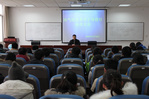 为加强我院与高中之间的联系,吸引更多的优秀学子报考我校,同时为在校学生提供感恩母校的实践机会,应用气象学院于1月13日召开了“优秀学子母校行”寒假实践活动宣讲大会。院党委副书记、副院长吴绵超出席并给与了指导,14、15级优秀学子和上届实践活动的优秀代表等参加了会议。大会由石一老师主持。