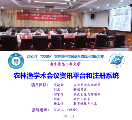 本次大赛由中国工程科技知识中心农业分中心(中国农业科学院农业信息研究所)、林业分中心(中国林业科学研究院林业科技信息研究所)、渔业分中心(中国水产科学研究院)联合举办,旨在推动农林渔科技资源高效利用、探索精准知识服务、助力农业科技创新。受疫情影响,大赛历时8个月,于1月21日在京召开作品评审会。针对农林渔行业科研资讯传播和学术会议交流存在的实际问题,尤其是后疫情时代的深远影响,来自我校农业资源与环境系、物联网系、软件工程系、数字媒体艺术系等多个院系不同专业的5名同学自发组成项目团队,围绕互联网+为行业服务的主题,各展所长,联合攻关,所开发的作品经过全国初审后成功入围决赛,并通过作品实操展示和答辩的激烈角逐后最终获奖。