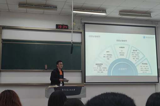 王科学为同学们从赛事机制、评选标准等方面详细地介绍了“挑战杯”和“互联网+”等一类竞赛的相关内容。将“大挑”和“小挑”进行比较,帮助同学们更直观地感受其比赛性质的不同。他用诙谐幽默的语调分享了一些参加竞赛的经历和获奖经验,调动氛围的同时又让同学们进一步了解了竞赛不仅仅是为了获奖,更重要的是找到志同道合的队友,锻炼自己,提升自己,以赛促学。