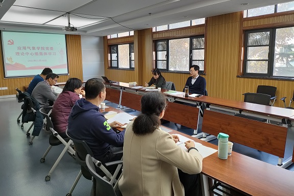 11月30日上午,应用气象学院党委理论学习中心组在尚贤楼410会议室召开集中学习研讨会,围绕十九届六中全会精神进行学习交流。校纪委书记周乃贵到会指导巡学旁听工作,院党委书记陈一虹主持会议,全体党委委员参会。