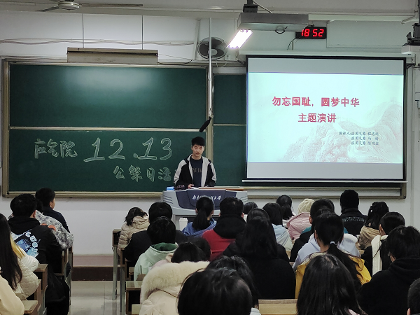 为贯彻落实中央精神,牢记侵略战争给中国人民和世界人民造成的深重灾难,加强学生爱国主义教育,增强学生感恩意识,应用气象学院青年志愿者协会组织学院困难生于12月13日晚上在文德楼N207举办“缅怀先烈,感恩励志”国家公祭日观影暨演讲活动。