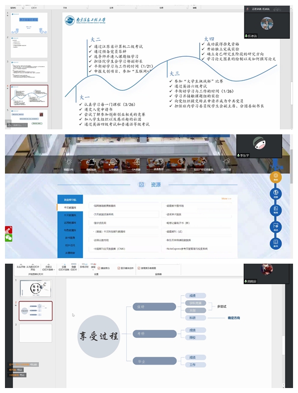 交流会上,李东宇学长通过为同学们讲解关于学校官网VPN系统的一些操作使用,鼓励同学们更好地利用学校资源。学长对图书馆与双创系统进行了着重讲解,强调了图书馆的使用会更加有效地帮助同学们查找学习资料。周雨辰学姐从长远发展角度讲解了如何毕业,怎样考研,如何复习这三个方面,建议同学们多尝试一些创新创业项目,不断提高自身综合素质,培养综合能力,丰富自身阅历。最后,任冰洁学姐也为大家分享了她对于大学四年的规划安排,详细讲解了各个年级提升核心竞争力的重点方向及学习方法,为同学们制定目标规划指明了方向。