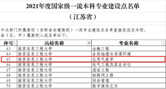近日,教育部办公厅公布了2021年度国家级一流本科专业建设点名单,我院应用气象学专业入选国家级一流本科专业建设点。