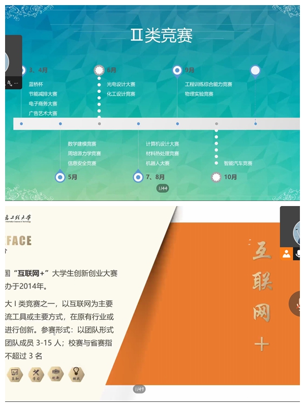 为促进应气院22级新生科研思维的形成,引导学生关注学科竞赛,营造院内创新创业氛围,应用气象学院科学技术协会于11月4日晚18:30通过腾讯会议开展了双创竞赛分享会,本次分享会邀请了应气院往年获奖的优秀学长学姐为新生普及“互联网+”、挑战杯、数学建模、生命科学等多项竞赛,并分享参赛经验。