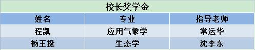 近日,南京信息工程大学研究生各类奖学金评审结果陆续公布,学院研究生在奖学金评选中更上一层楼,多名研究生获评国家奖学金、校长奖学金等荣誉,取得可喜可贺的成绩。