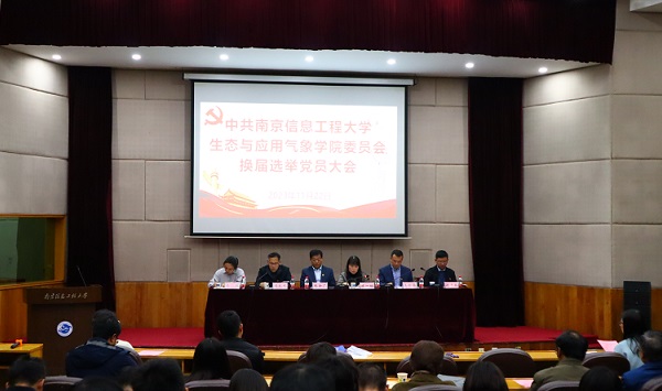11月22日,中共南京信息工程大学生态与应用气象学院委员会换届选举党员大会在长望楼报告厅隆重举行。校党委常委、组织部部长张新厂到会指导,学院全体师生党员出席大会,学院民主党派教师代表列席会议。会议由生态与应用气象学院院长冯兆忠同志主持。