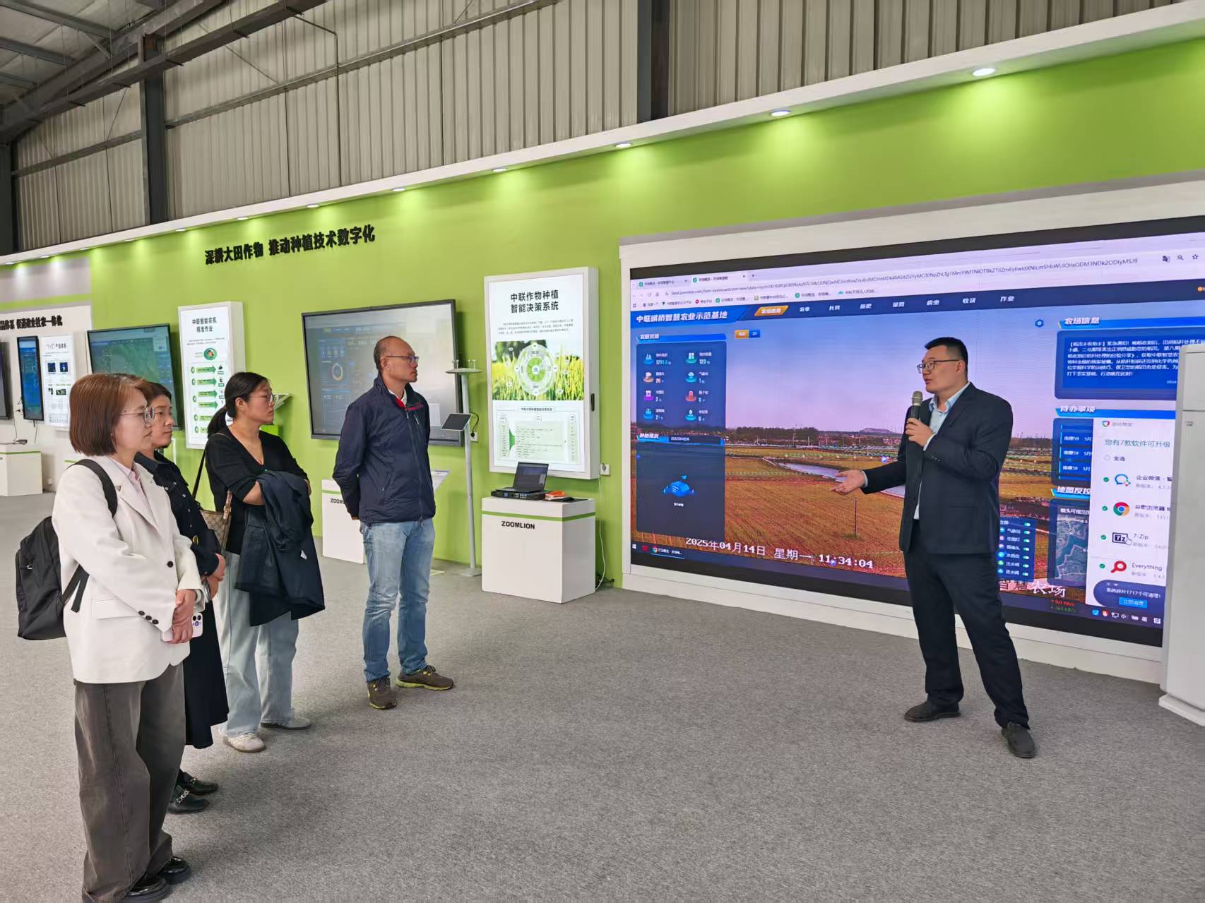 在中联智慧农业公司峨桥智慧农场,业务部负责人热情接待了调研团队,并详细介绍了公司集农艺、农机、农业信息技术优势为一体的前沿技术。负责人通过实例解析,展示了农业大数据、物联网设备及作物模型等现代科技手段如何在农业生产中得以实际应用,显著提升了农业生产效率和品质。此外,还详细介绍了中联智慧农业云平台的功能与应用,通过现场演示,展示了农场信息、土壤肥力、作物长势、产量预测及病虫害分析等多项功能,直观呈现了数字化智慧农业相较于传统农业的显著优势。