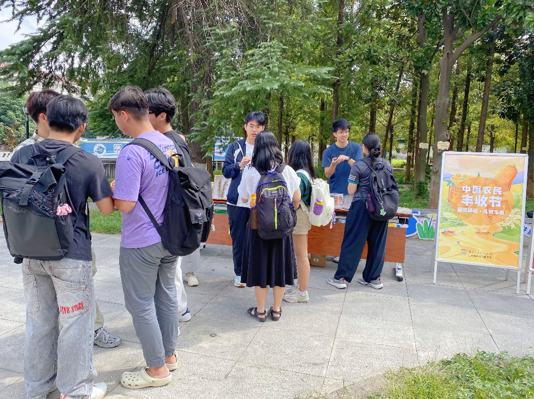 9月23日,正值秋分时节和第八个中国农民丰收节,南京信息工程大学生态与应用气象学院智慧农业专业本科生在校园内开展了以“庆丰收、促和美”为主题的中国农民丰收节宣传活动,以实际行动响应国家号召、弘扬农耕文化、展现学科特色。