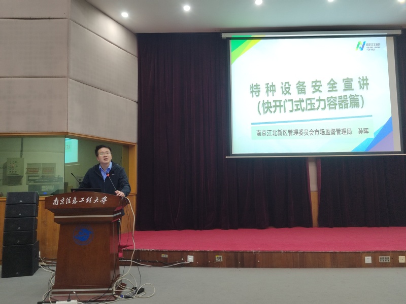 10月28日下午,由校实验室与设备管理处主办、我院承办的2025年实验室安全文化月系列活动之实验室安全文化沙龙首场活动在长望楼N102报告厅举行。此次沙龙由我院党委书记陈一虹主持,特别邀请了南京江北新区市场监管局特种设备监管办孙晖主任作报告。实验室与设备管理处副处长吕红、我院院长助理纪洋教授出席了会议。