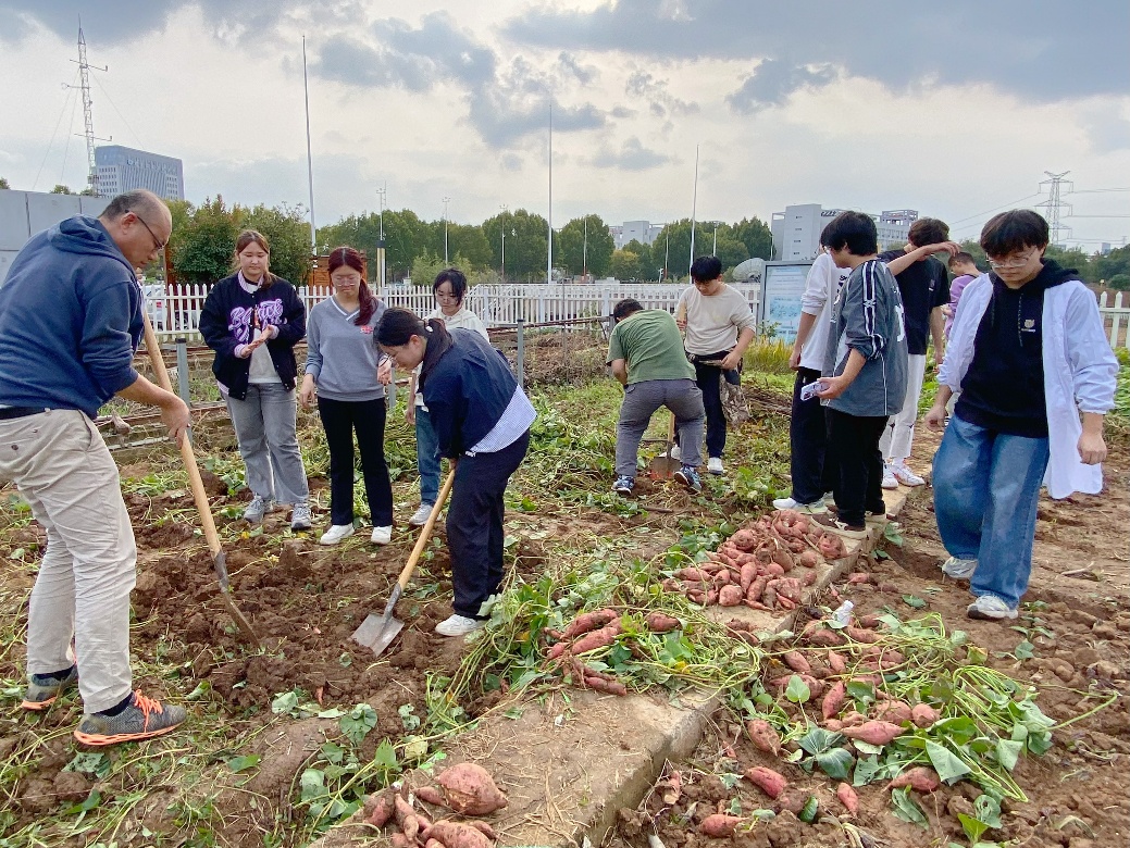 近日,在霜降节气期间,南京信息工程大学生态与应用气象学院智慧农业的学子们在江晓东老师的带领下,在二十四节气农耕文化园开展了一次秋收实践课。同学们收获了甘薯、花生、棉花、高粱等作物,并对水稻进行了实地测产,在丰收的喜悦中,上了一堂生动的“秋收秋播”农事指导课。